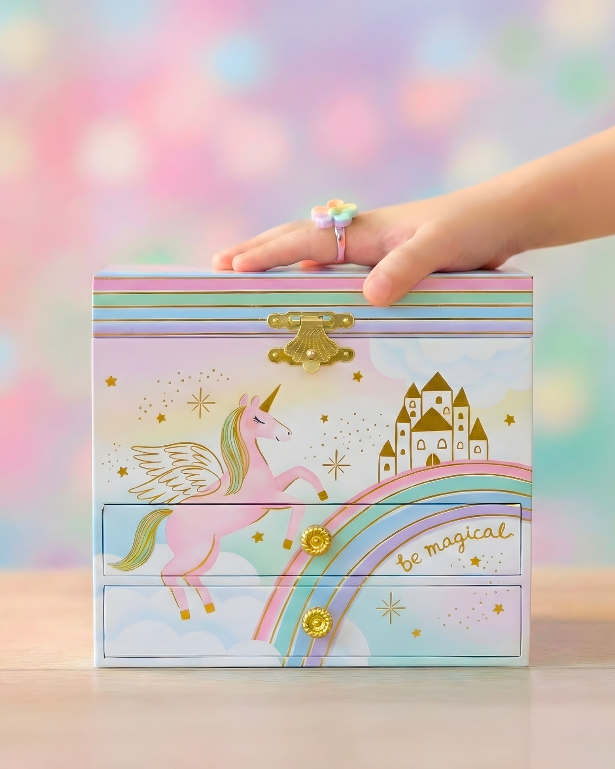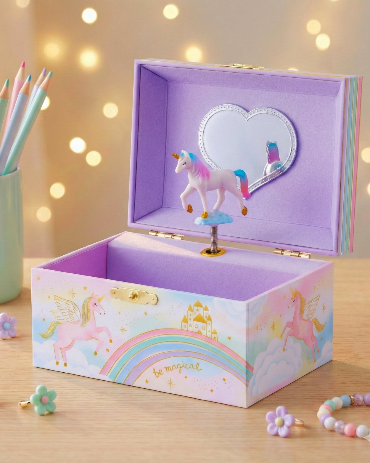 - GLORIAThe unicorn jewelry box design is nothing short of magical, with vibrant colors, intricate detailing, and a charming unicorn figurine that gracefully rotates to the sweet melody when you open the box. It's like having a piece of fairy tale right on your dresser!