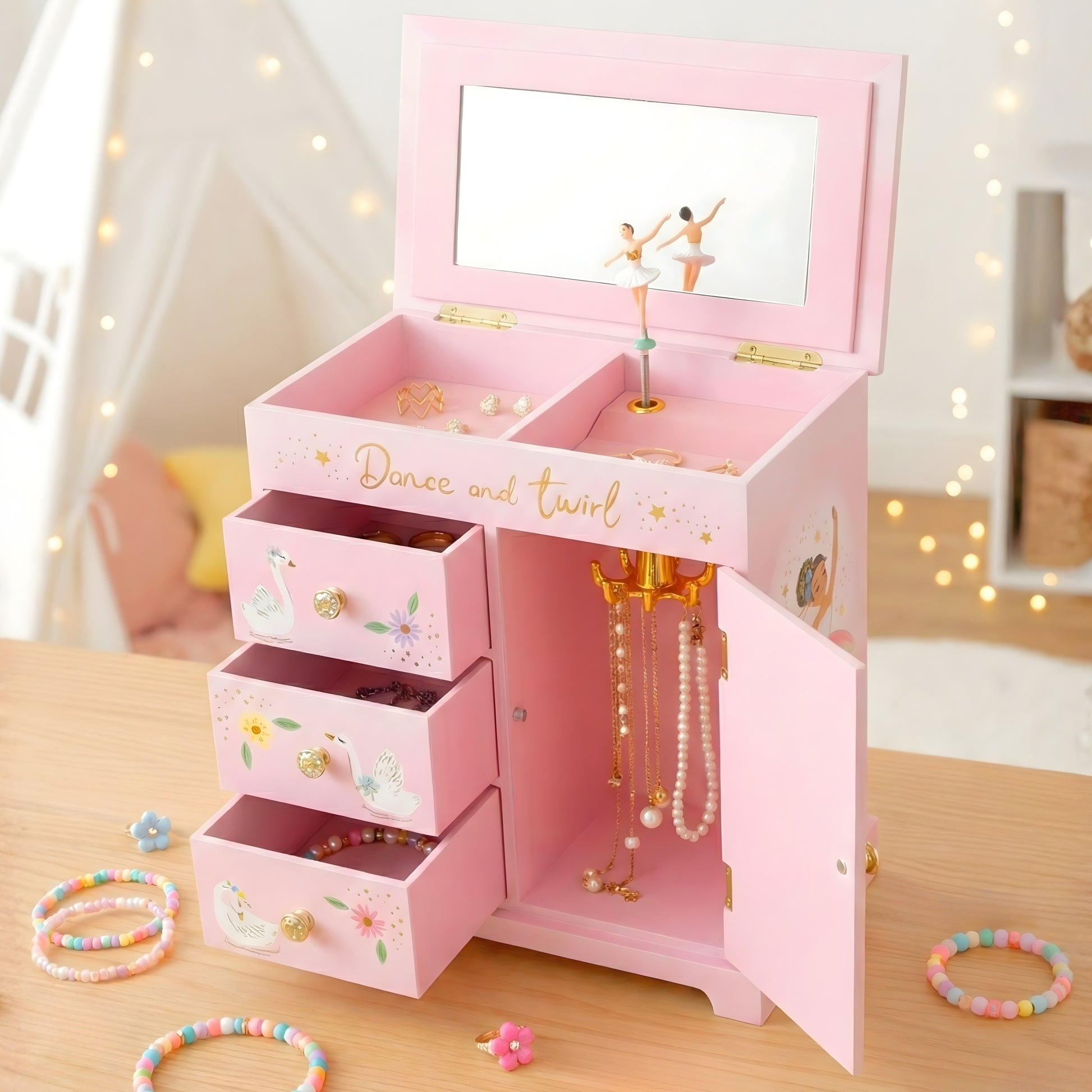 Swan Lake Ballerina Musical Jewelry Box w/ Drawers